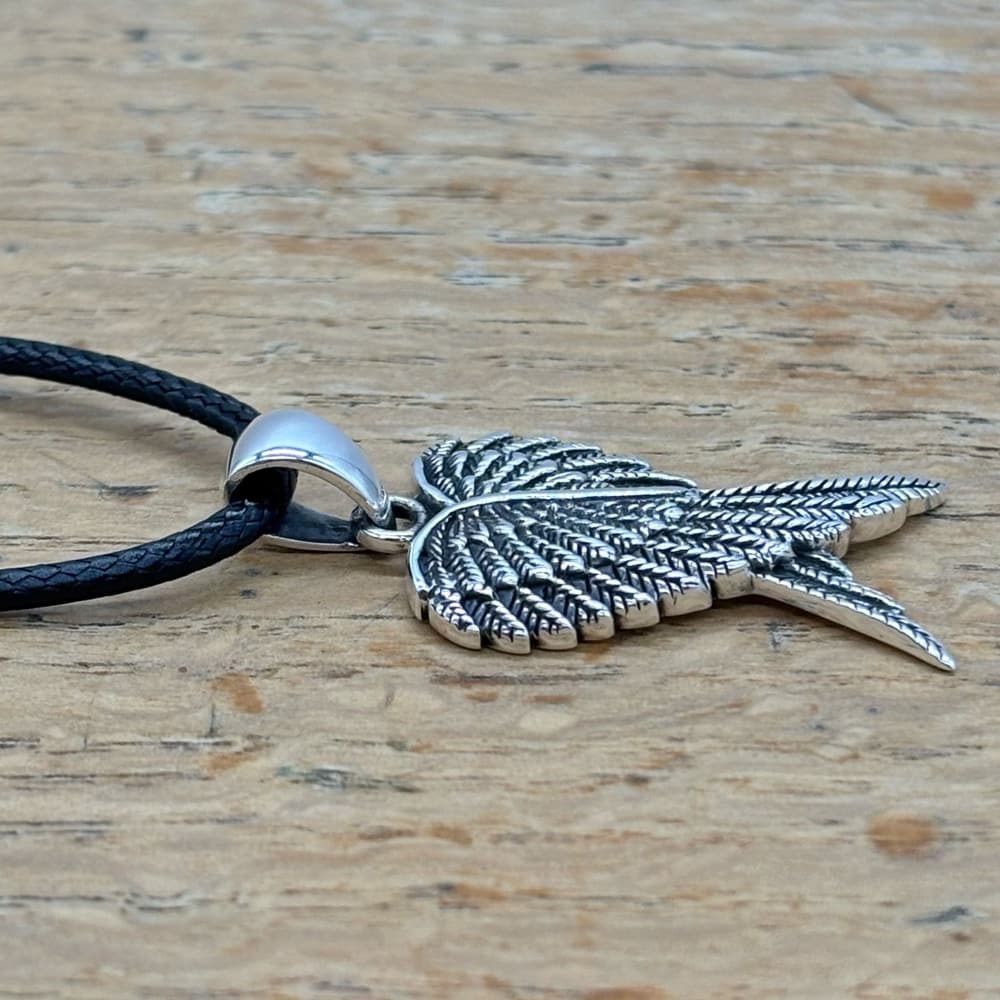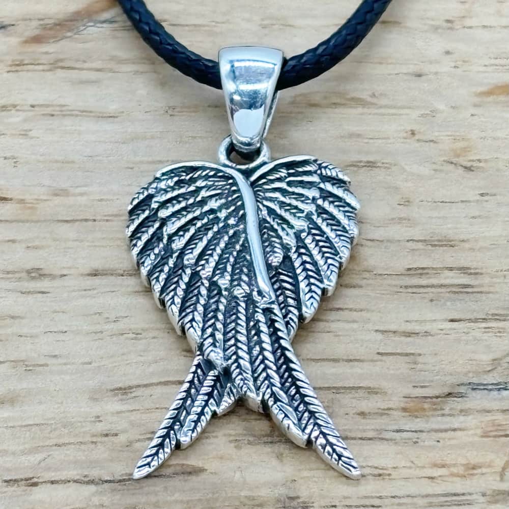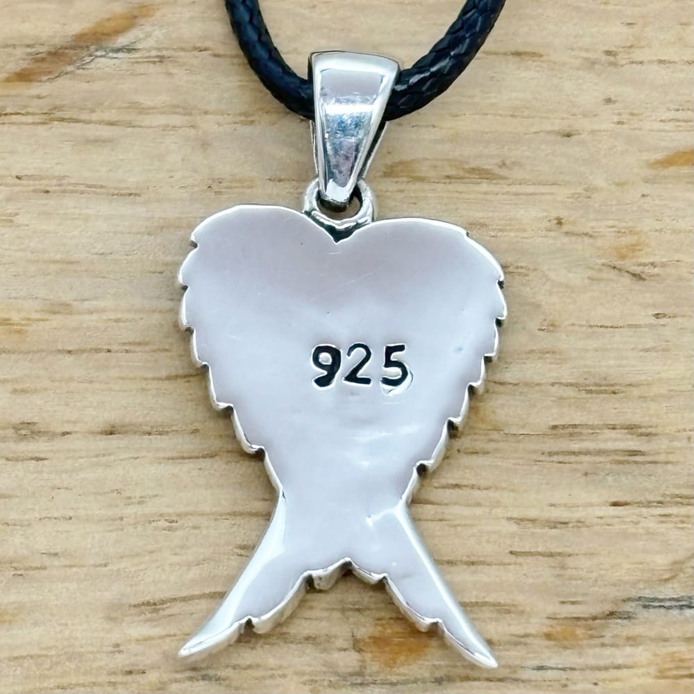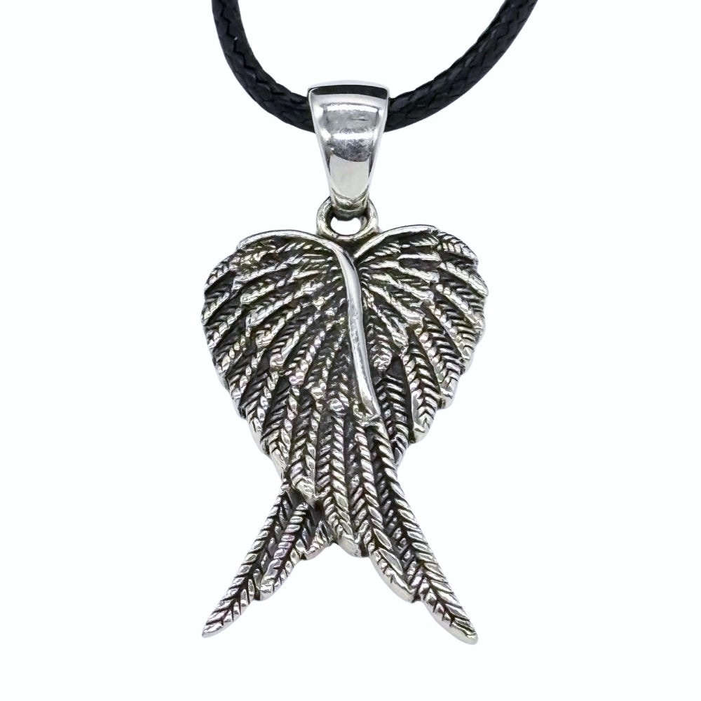 Expertly crafted from high-quality sterling silver, this elegant pendant features a detailed angel wings design, perfect for those who seek spiritual meaning or a heartfelt gift.