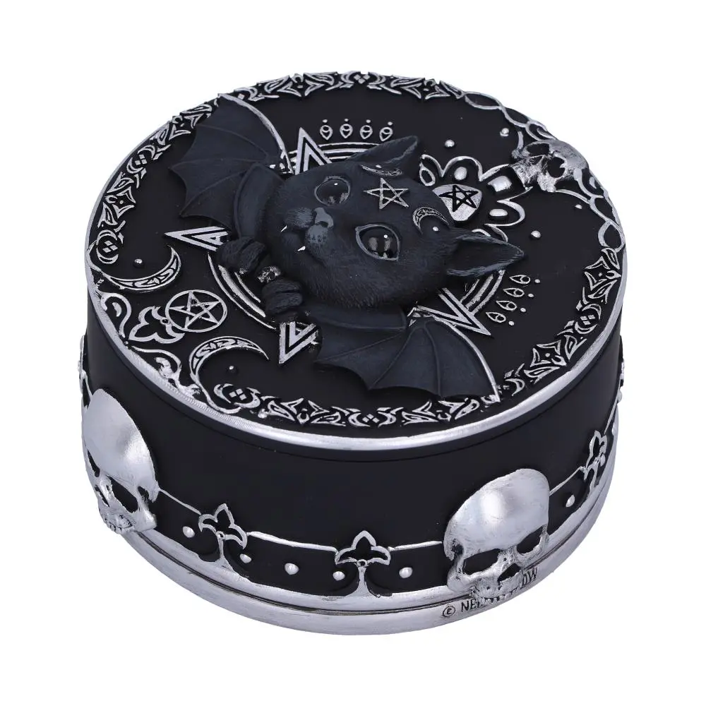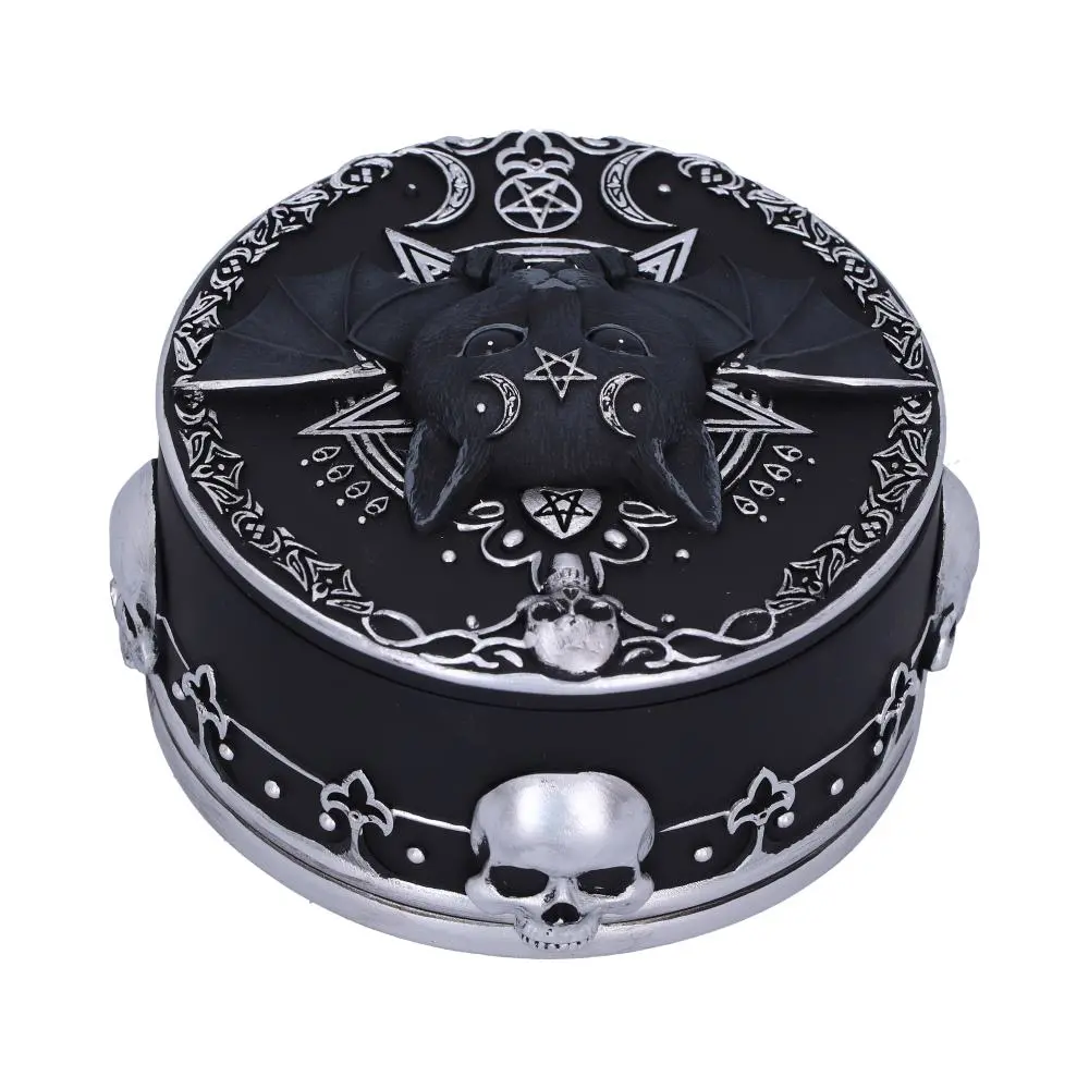 The trinket box is decorated in ornate silver detailing and satanic symbology and is cast in the finest resin before being expertly hand-painted.
